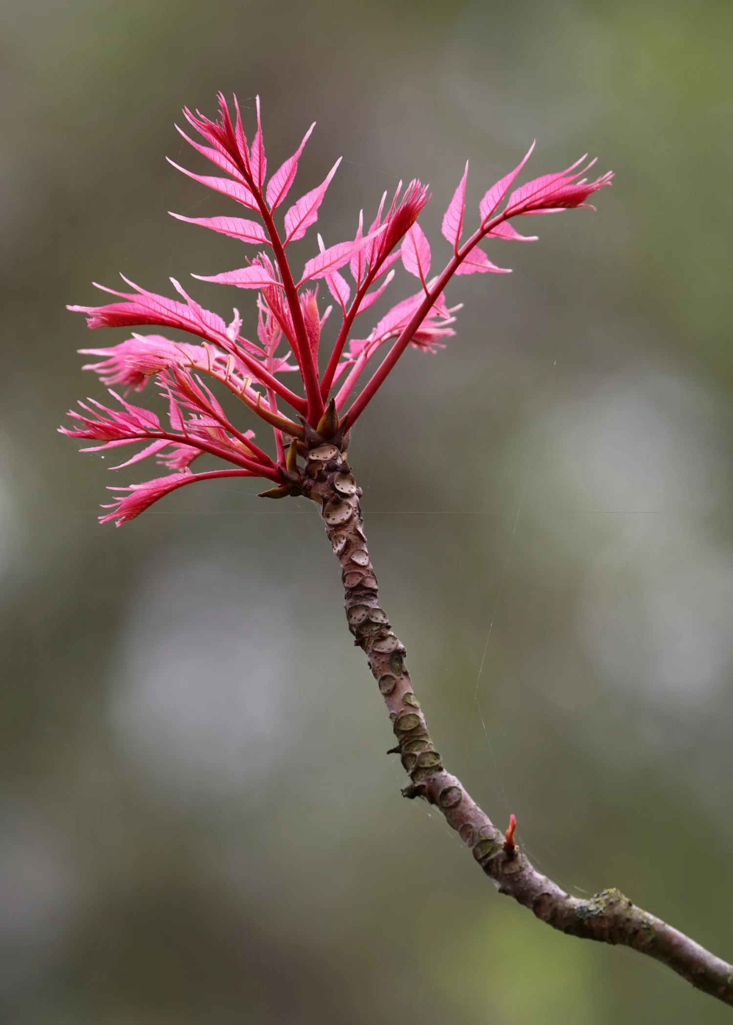 Native to eastern and southeastern Asia (North Korea, China, Nepal, India, Myanmar, Thailand, Malaysia, Indonesia) and is a temperate-climate deciduous member of the mahogany family. The wood is highly sought after and is used to create the bodies of electric guitars. Grown in full sun exposure, Chinese Red Toon typically grows 15-20 feet tall but often is cut to the ground to maintain an interesting and colorful bonsai-esque lower planting. The 1-2 foot long pointed oblong leaflets emerge in many tones of red, bright pink, then turn to green with age. Summer flowers have lovely pale pink petals.