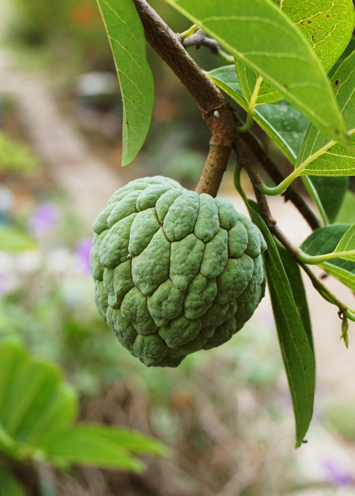 Sugar Apple is a small deciduous tropical fruit tree or shrub from the custard apple family known by the names of Sugar Apple, Sweetsops, or Custard Apple. Sugar Apple Trees are native to the tropical climates of the America’s, as well as the Caribbean however they have been naturalized elsewhere are are cultivated in other tropical climates throughout the world for their delicious tasting fruit. Hard fruiting type.